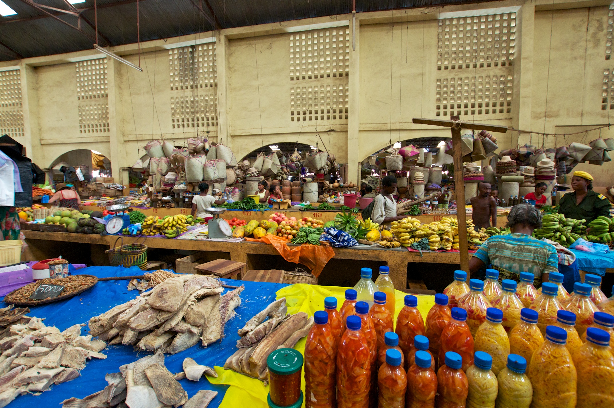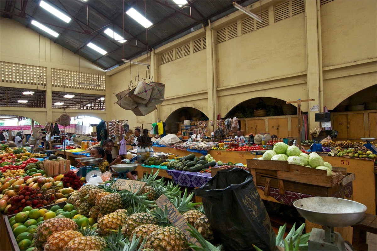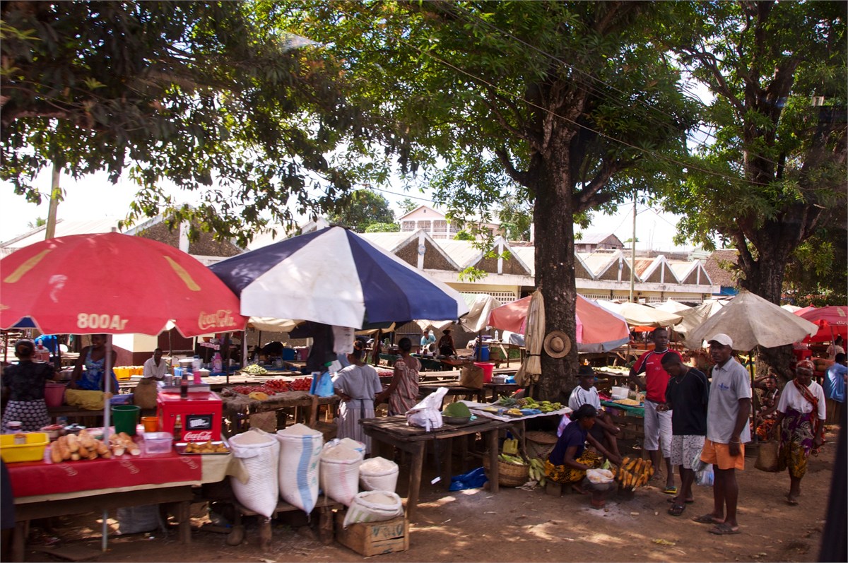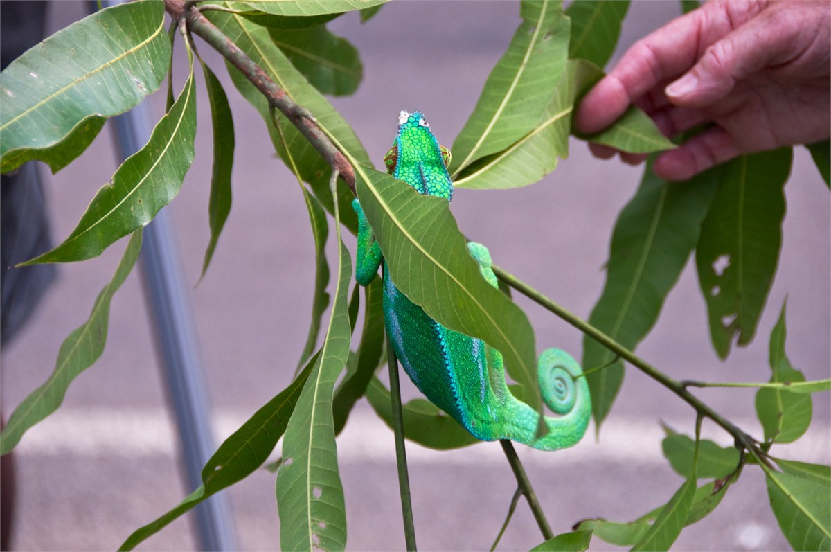 Our first visit to Madagascar. We came in by tender and had a local guide. We toured Hell-Ville, the provencial capital. The weather was very hot and the bus nonairconditioned and not working well. Hugh caught a chameleon and everyone had a good time with it. The markets were fun and the poor were well-fed. An experience we will never forget! /susanClick a photo to view or click first photo to see a slide show.