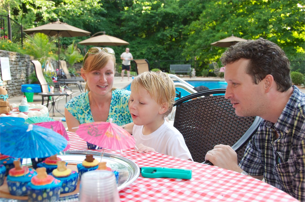 On Friday Susan & I went to see Hudson's Vacation Bible School final program and enjoyed a picnic at the Church. On Saturday Elyse put on the most wonderful Teddy Bear birthday party for Cooper. On Sunday we celebrated Trey's birthday and went to Church as a big family to see the Bible School program again. We were so glad that Gran, Steve, Dennis, and Diana Hudson were able to come for the weekend! /hugh