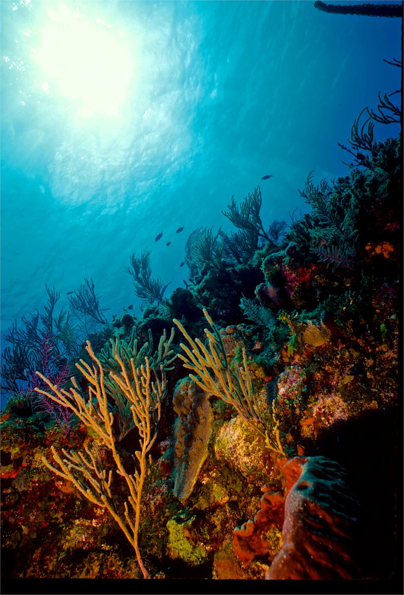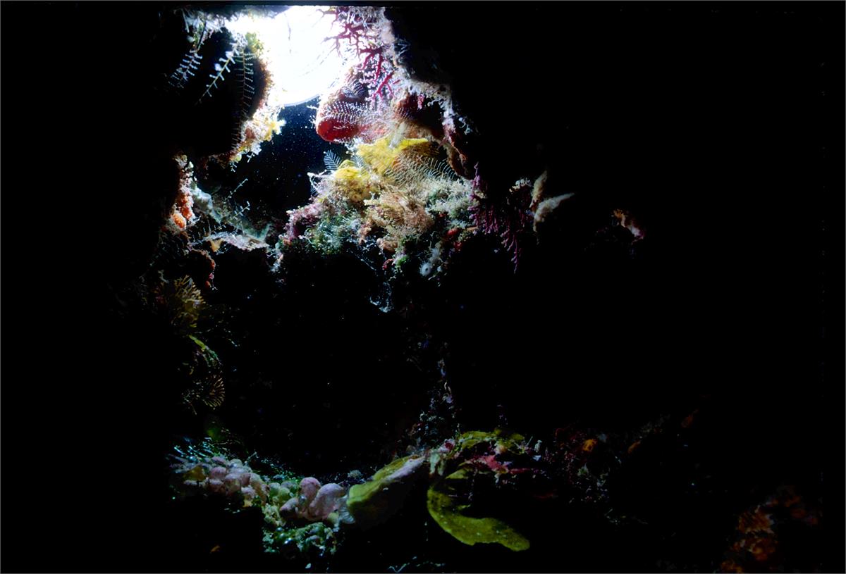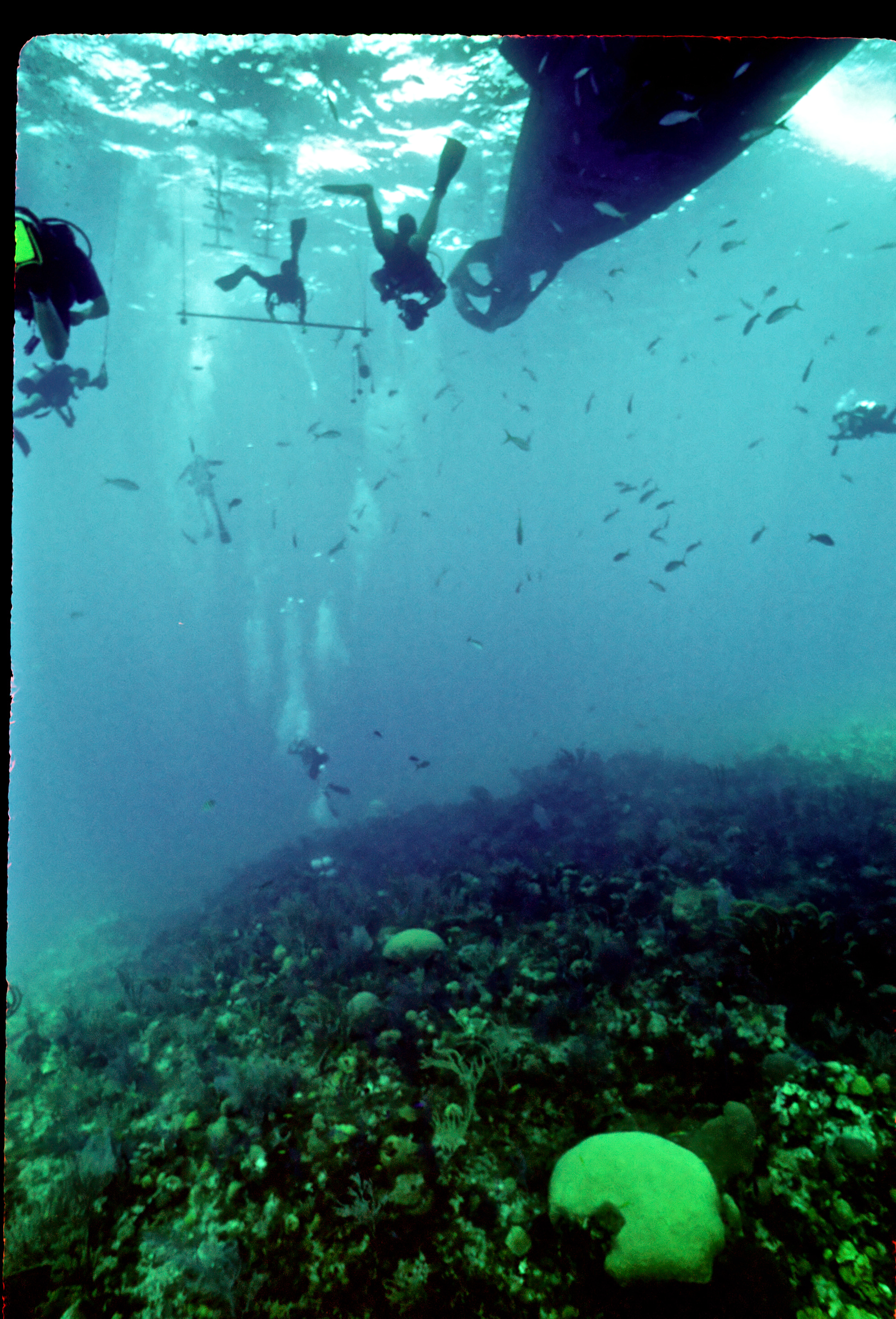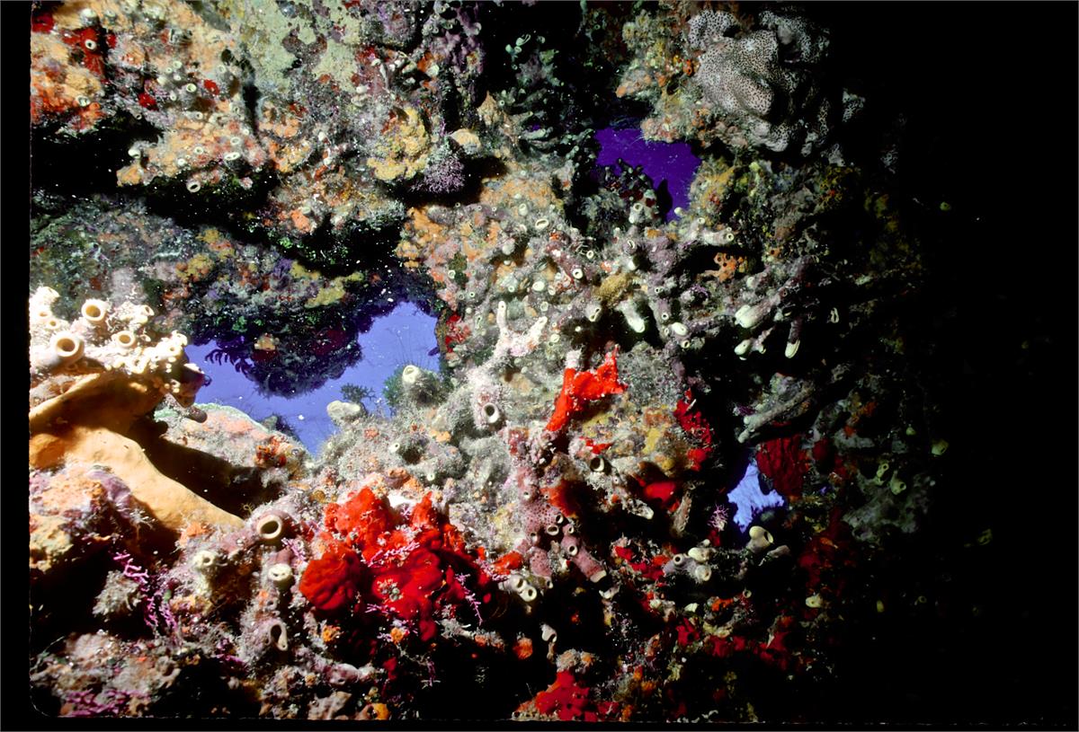 Dive # 201, Nikonos V camera, Nikonos 15mm lens, Velvia 50 slide film, single Ikelite Ai strobe, solo. I saw a feather star and and a winged oyster. Swim throughs, very healthy coral. Easy access, no current. 150ft visibility today. /hughClick a photo to view or click first photo to see a slide show.