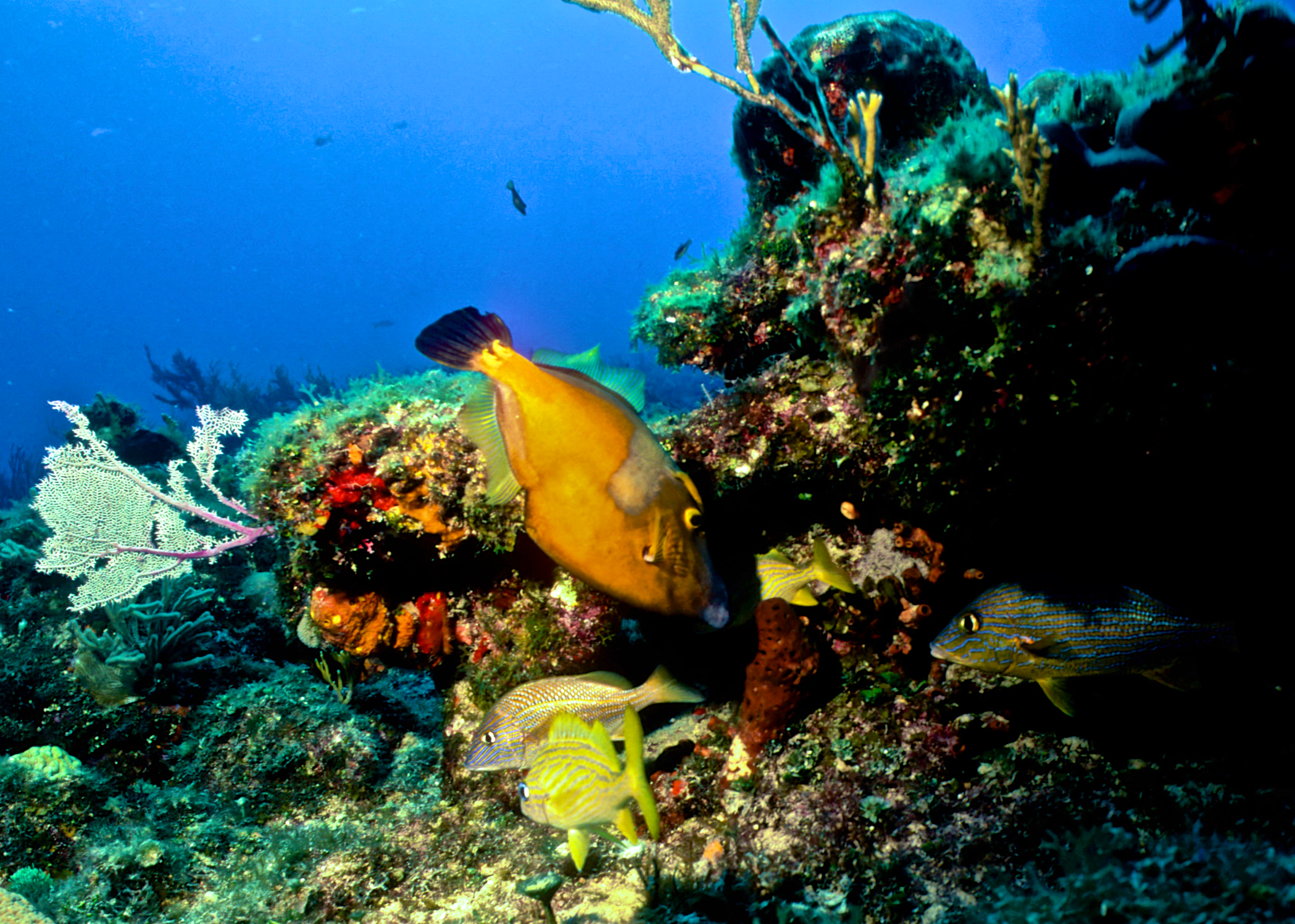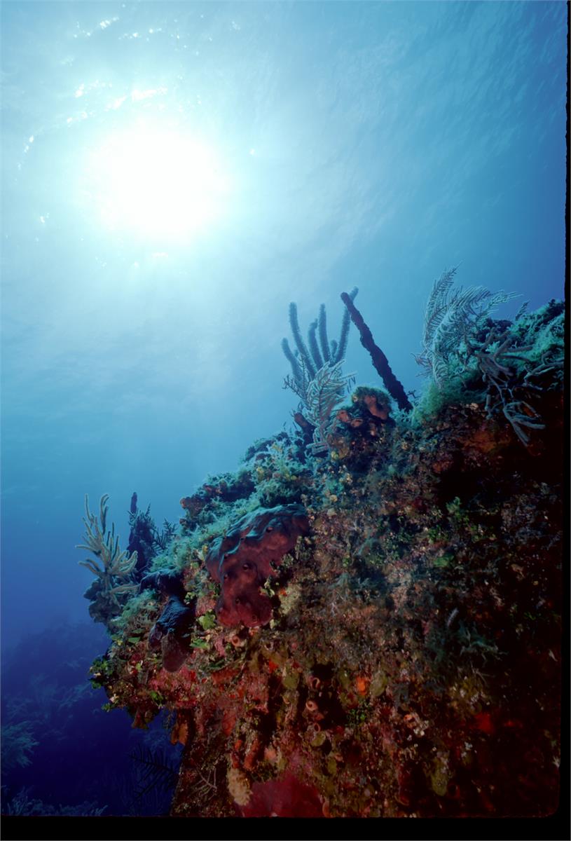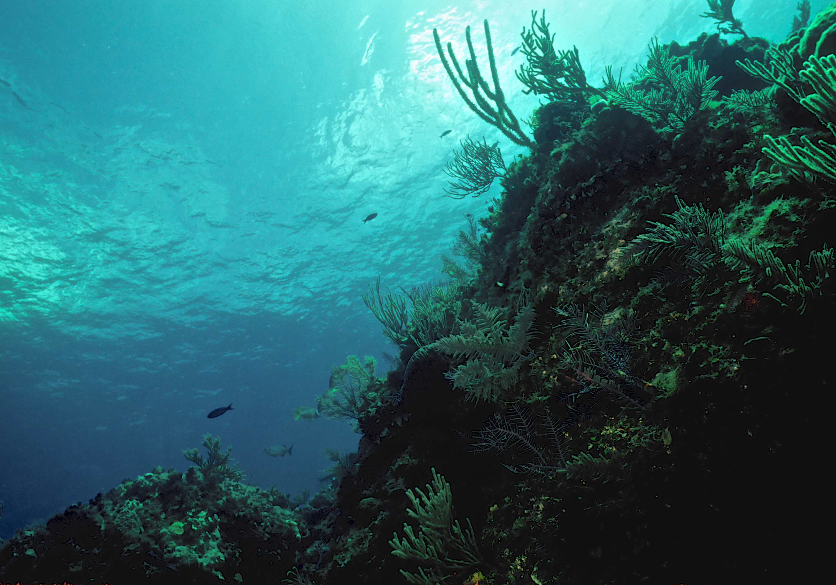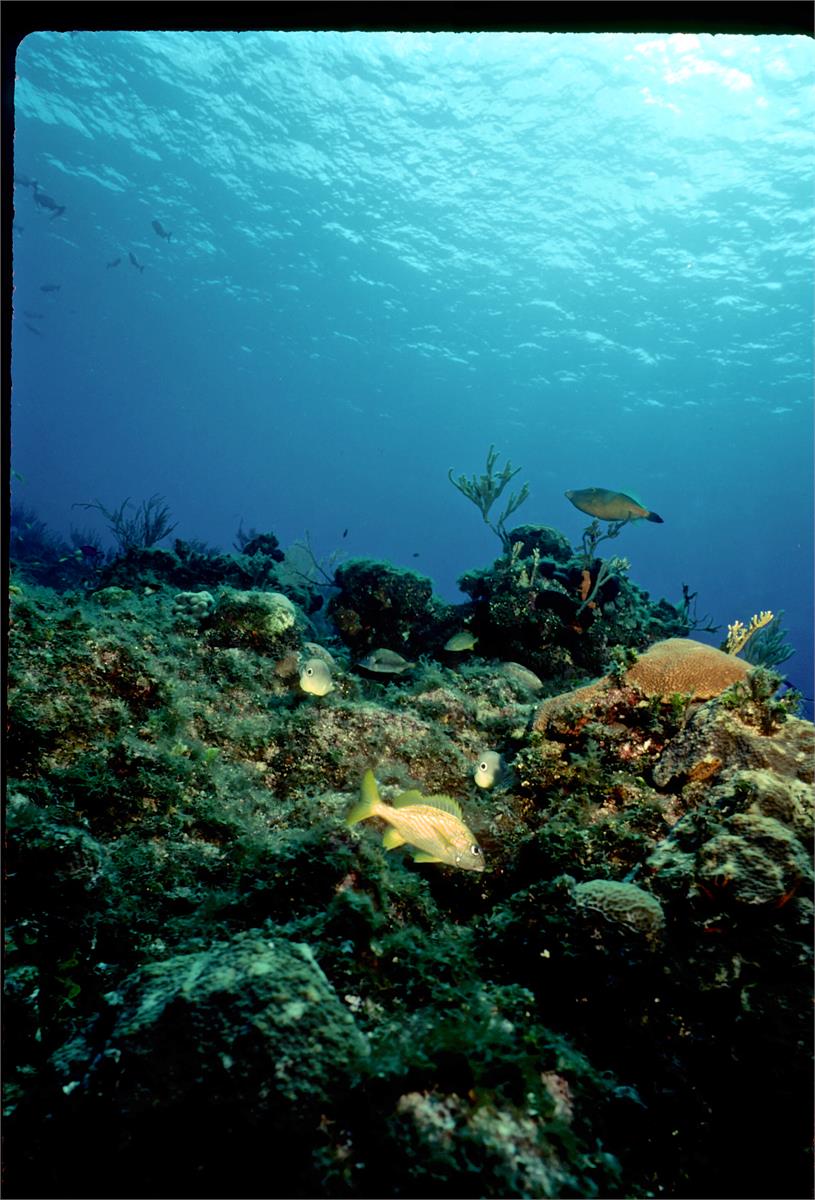 Dive # 201, Nikonos V camera, Nikonos 15mm lens, Velvia 50 slide film, single Ikelite Ai strobe, solo. I saw a feather star and and a winged oyster. Swim throughs, very healthy coral. Easy access, no current. 150ft visibility today. /hughClick a photo to view or click first photo to see a slide show.