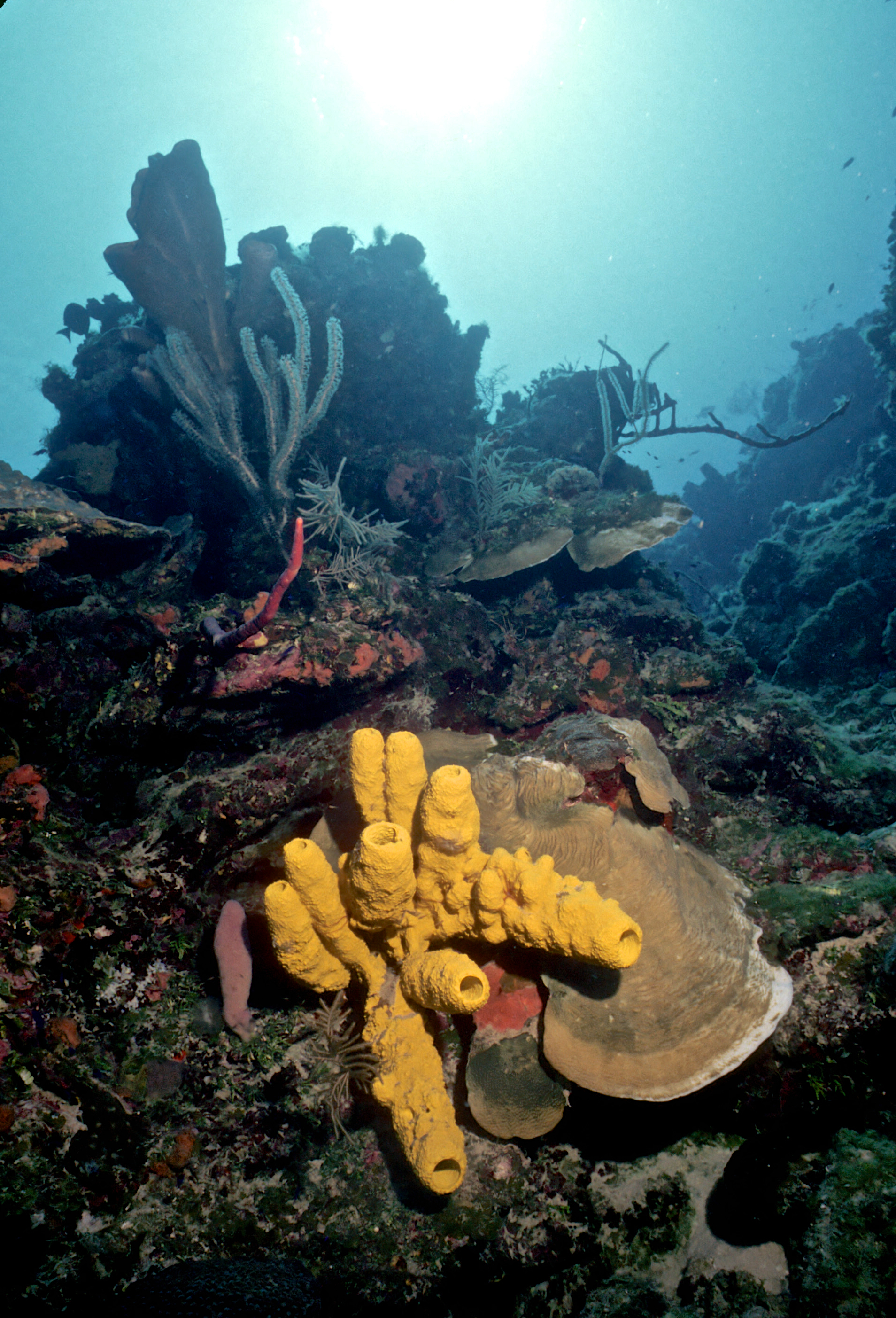 Dive 205. Dive buddy Rob Schlamowitz. Nikonos V, 15mm lens, Sensia 200 slide film. I was on a dive medicine course and dived with the participants. /hughClick a photo to view or click first photo to see a slide show.